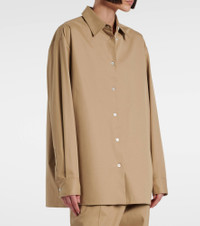A deep affection for refined and timeless fashion influences The Row's dedication to craftsmanship and quality. Made from crisp cotton and cashmere poplin, the Tansy shirt has a oversized fit and a front button placket. Product Details - Material: 95% cotton, 5% cashmere - Care instructions: specialist clean - Made in Italy - Designer color name: Beige - Item color: beige - Closure: buttoned front - Item number: P01035340 Size & Fit - True to size - Dropped shoulders - Oversized - Non-stretchy fabric - Falls below the hip - The model seen in the picture is 178cm-5'10" and wearing a size US 4