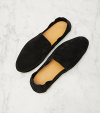 A deep affection for refined and timeless fashion influences The Row's dedication to craftsmanship and quality. The Tyler loafers are an effortless slip-on style made purely from black suede. Product Details - Upper: leather (suede) - Lining: leather - Sole: leather insole, rubber sole - Toe shape: almond toe - Made in Italy - Includes: shoe box, dust bag - Designer color name: Black - Item color: black - Item number: P01049288 Size & Fit - Fits slightly large to size - we recommend trying a half size smaller - Narrow at the seam - Best fit for narrow feet - European sizes
