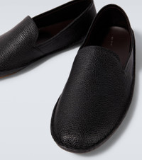 A deep affection for refined and timeless fashion influences The Row's dedication to craftsmanship and quality. Italian-made from leather, the Vasko slip-on shoes feature raised outer seams and lightweight rubber soles. Product Details - Upper: leather - Lining: leather - Sole: leather insole, rubber sole - Toe shape: round toe - Made in Italy - Includes: shoe box, dust bag - Designer color name: Black - Item color: black - Item number: P01011277 Size & Fit - True to size - Half sizes please take the next size up - European sizes