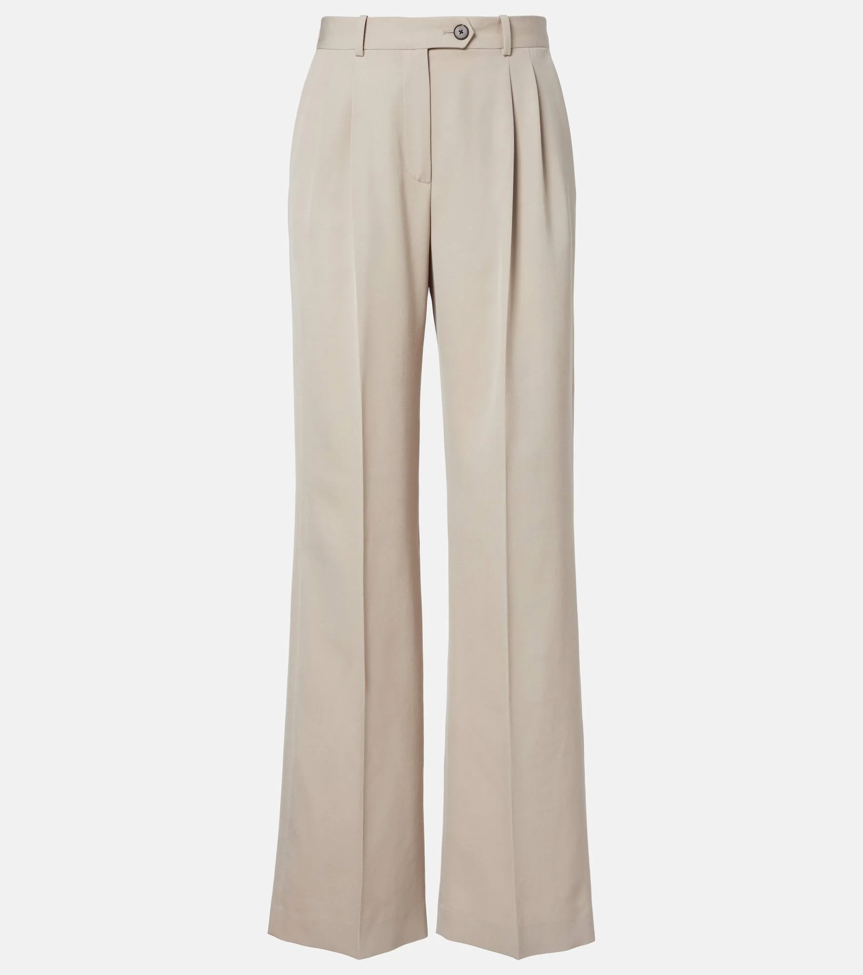 Refined tailoring is at the heart of The Row’s identity – the brand was named after Savile Row, London’s bespoke tailoring district. The Virgil wool gabardine pants are designed with defined front pleats and a relaxed wide-leg fit. Product Details - Material: 100% wool - Care instructions: dry clean - Made in Italy - Designer color name: Stone - Item color: gray - Lining: 100% silk - Closure: zip and button fastening - Pockets: slant pockets, back pocket - Belt loops - Double pleat - Item number: P01115285 Size & Fit - True to size - Non-stretchy fabric - Wide-leg - The model seen in the picture is 178cm-5'10" and wearing a size US 4