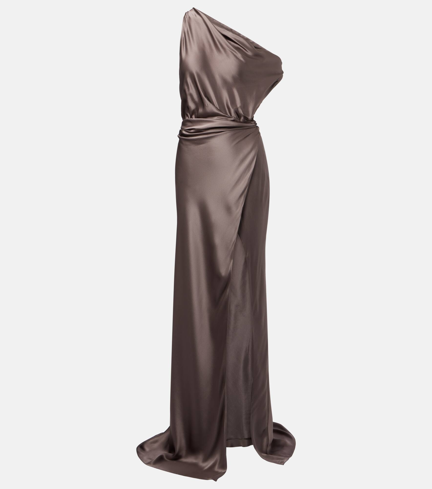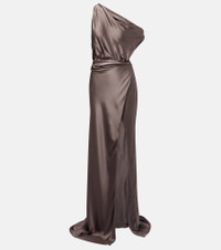 Draped one-shoulder silk satin gown