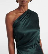 This The Sei gown is crafted from lustrous silk satin and features a draped, one-shoulder silhouette that is perfect for starry evenings. Product Details - Material: 100% silk - Care instructions: dry clean - Made in the USA - Designer color name: Hunter - Item color: green - Side slits - Closure: concealed zipper, zipped side, hook fastening - Item number: P01072733 Size & Fit - True to size - Cinched waist - Non-stretchy fabric - The model seen in the picture is 178cm-5'10" and wearing a size US 4