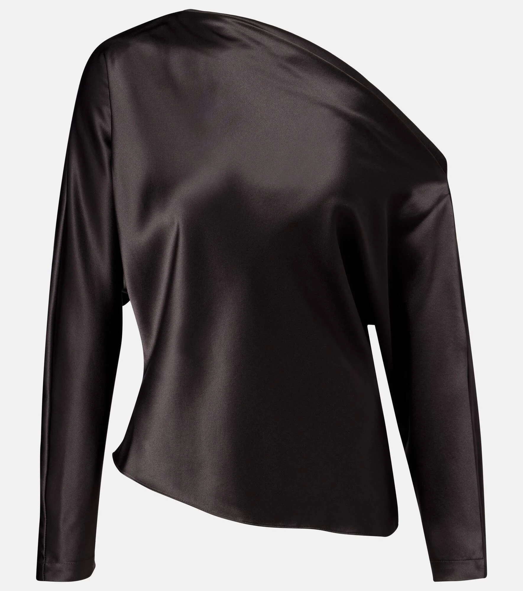 The Sei delivers sophisticated designs for evenings out and beyond. This long-sleeved top is made from a lustrous silk satin fabric and cut to an elegant one-shoulder silhouette. Product Details - Material: 100% silk - Care instructions: dry clean - Made in China - Color: grey - Designer color name: Carbon - Item number: P01160815 Size & Fit - True to size - Cinched waist - Non-stretchy fabric - Falls to the hip - The model seen in the picture is 178cm-5'10" and wearing a size US 4