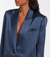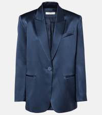 The Sei’s creations are designed for women, by women, to transcend generations and lifestyles. Complete with shoulder pads and a classic peak lapel, this blazer is cut from silk to a single-breasted, oversized silhouette. Product Details - Material: 100% silk - Care instructions: dry clean - Made in China - Designer color name: Slate Blue - Item color: blue - Lining: 100% silk - Closure: single-breasted (one button) - Peak lapel - Shoulder pads - Pockets: welt pocket, jetted - Fully lined - Item number: P01111868 Size & Fit - True to size - Shoulder pad inserts - Oversized - Non-stretchy fabric - Falls below the hip - The model seen in the picture is 178cm-5'10" and wearing a size US 4