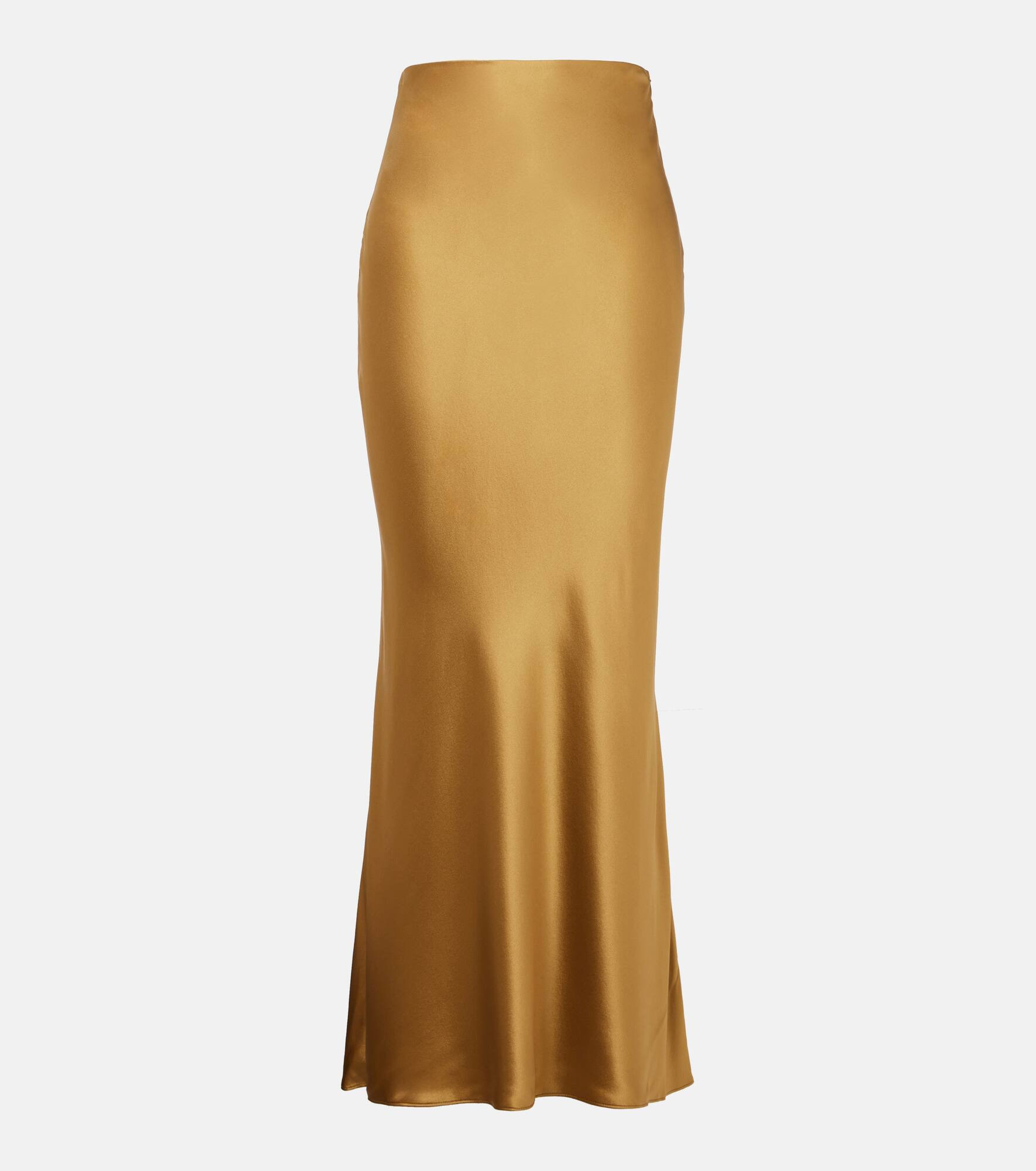 This maxi skirt from The Sei is crafted from silk charmeuse and features a sleek bias-cut silhouette. The design is fully lined and features a hidden zipper at the side seam for a streamlined, elegant look. Product Details - Material: 100% silk - Care instructions: dry clean - Made in China - Designer color name: Antique Gold - Item color: gold - Lining: 100% silk - Fully lined - Contains non-textile parts of animal origin - Item number: P01039245 Size & Fit - True to size - Non-stretchy fabric - High-waisted - The model seen in the picture is 178cm-5'10" and wearing a size US 4