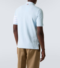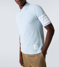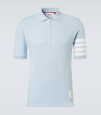Contrasting 4-Bar horizontal stripes are a Thom Browne signature, dubbing the label’s designs as a ''modern uniform''. This polo shirt is crafted from cotton pique and features the iconic brand motif. Product Details - Material: 100% cotton - Care instructions: machine wash at 30 degrees - Made in Italy - Designer color name: Light Blue - Item color: blue - Trim: 100% cotton - Closure: partially buttoned front - Collar: polo collar - Item number: P01061803 Size & Fit - Fits large to size - we recommend trying one size smaller - Designed for a loose fit - Non-stretchy fabric - Falls to the hip - Height of model is 189cm-74.5" and wears a size 0