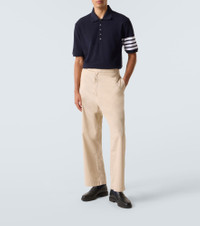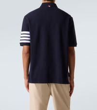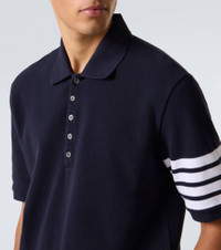 Contrasting 4-Bar horizontal stripes are a Thom Browne signature, dubbing the label’s designs as a ''modern uniform''. This polo shirt is crafted from cotton and boasts the iconic motif at the left sleeve. Product Details - Material: 100% cotton - Care instructions: machine wash at 30 degrees - Made in Italy - Designer color name: Navy - Item color: blue - Material II: 100% cotton - Material III: 100% cotton - Collar: polo collar - Closure: buttoned placket - Side slits - Item number: P01061801 Size & Fit - Fits large to size - we recommend trying one size smaller - Designed for a loose fit - Non-stretchy fabric - Falls below the hip - The model in the picture is 185cm-6'1" and wearing a size 2