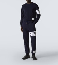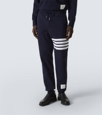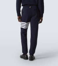 Thom Browne’s navy sweatpants are crafted from cotton jersey featuring the label's 4-Bar stripe on the thigh, finished with a drawstring, and signature grosgrain loop tab at the back. Product Details - Closure: self-ties - Made in Japan - Pockets: side slit pockets, back pockets - Designer color name: Navy - Material: 100% cotton - Care instructions: hand wash - Item number: P00431690 Size & Fit - True to size - Elasticated waist - Adjustable at the waist - Slightly stretchy fabric - Tapered leg - The model in the picture is 185cm-6'1" and wearing a size 2