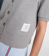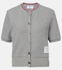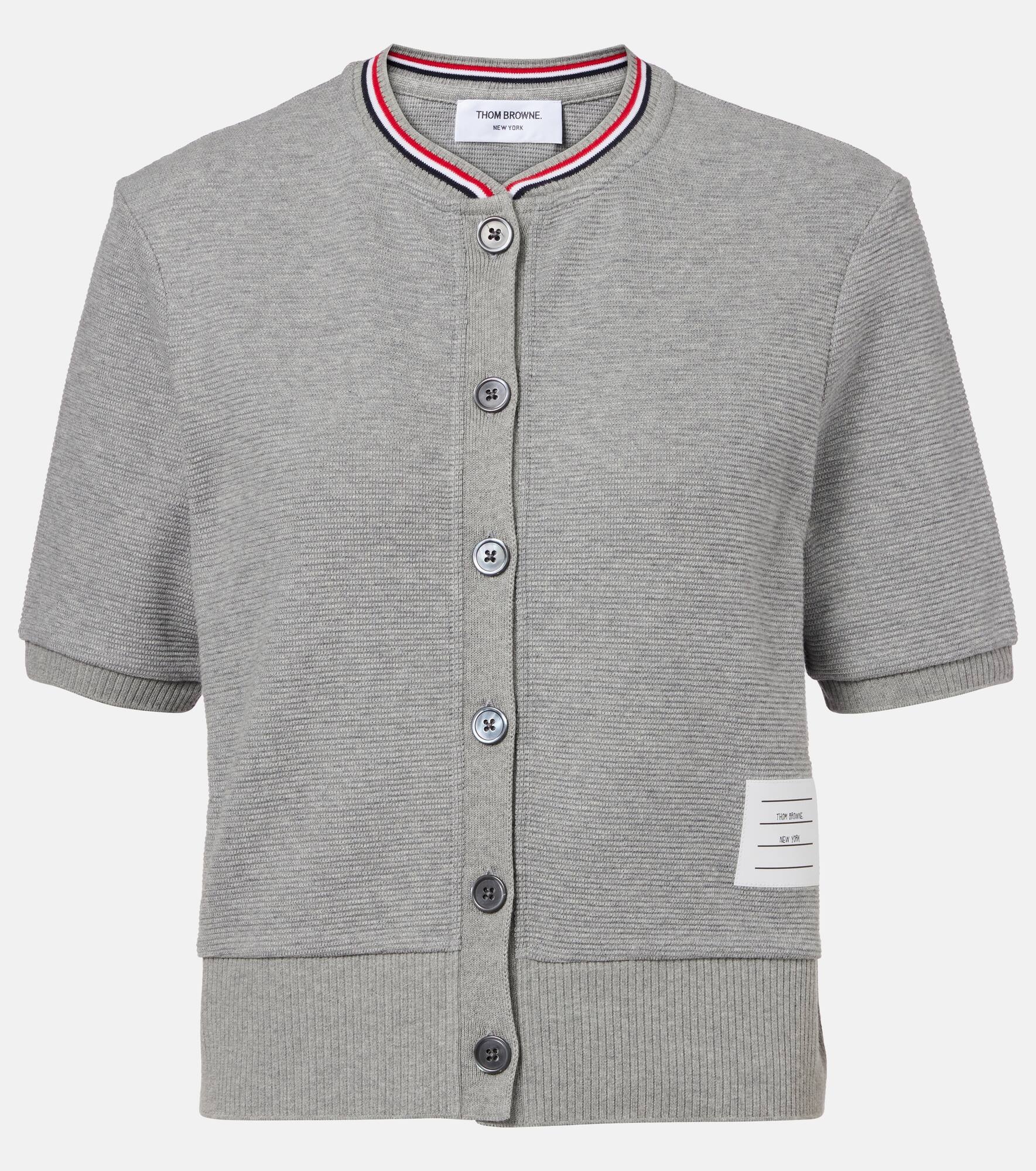 Add layers of sophistication to your transseasonal edit with this cardigan from Thom Browne. Cropped in a cotton waffle knit, this style features the tricolor grosgrain trims at the neckline for a preppy touch. Product Details - Material: 100% cotton - Care instructions: hand wash - Made in Italy - Designer color name: Lt Grey - Item color: gray - Material II: 98% cotton, 2% elastane - Contains non-textile parts of animal origin - Closure: buttoned front - Collar: crewneck - Cuff: ribbed - Hem: ribbed - Item number: P01076661 Size & Fit - True to size - Straight fit - Stretchy fabric - Slightly cropped - The model seen in the picture is 178cm-5'10" and wearing a size IT 40