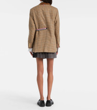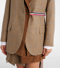 Thom Browne has gained global attention for redefining contemporary tailoring and creating a modern uniform. Made from wool with corduroy trims, the Gunclub blazer is a single-breasted piece with a houndstooth pattern and flap pockets. Product Details - Material: 100% wool - Care instructions: dry clean - Made in Italy - Designer color name: Brown - Item color: brown, blue - Lining: 100% cupro - Material II: 100% cotton - Hardware color: gold - Contrast lapel - Cuff: four buttons - Pockets: flap pockets, internal pockets, breast pocket - Vent: double - Contains non-textile parts of animal origin - Item number: P01052024 Size & Fit - Fits large to size - we recommend trying one size smaller - Shoulder pad inserts - Straight fit - Non-stretchy fabric - Falls below the hip - The model seen in the picture is 178cm-5'10" and wearing a size IT 38