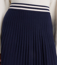 Thom Browne has gained global attention for redefining contemporary tailoring and creating a modern uniform. This midi skirt is crafted in Italy from a soft wool blend and flaunts a plisse silhouette finished with an elasticated striped waistband. Product Details - Material: 87% wool, 13% polyester - Care instructions: dry clean - Made in Italy - Designer color name: Navy - Item color: blue - Elasticated waistband - Item number: P01079841 Size & Fit - True to size - Elasticated waist - Stretchy fabric - The model seen in the picture is 178cm-5'10" and wearing a size IT 40