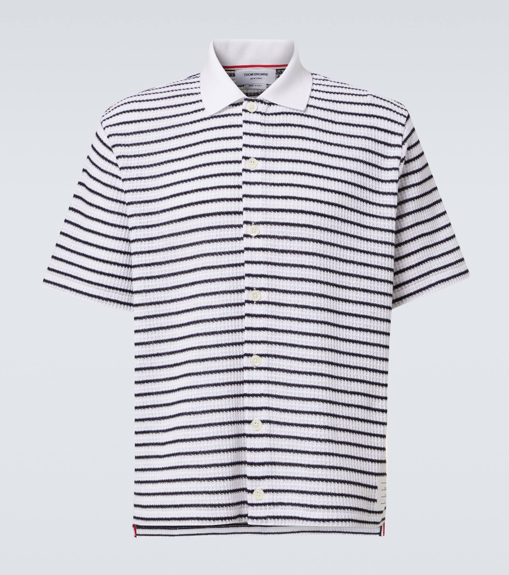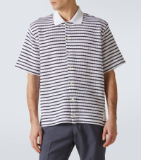 Striped waffle-knit cotton polo shirt