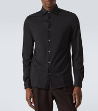 Founded by Savile Row-trained tailors, Thom Sweeney demonstrates exceptional craftsmanship and an uncomplicated British flair. A refined addition to your smart casual collection, this shirt is made from soft cotton jersey. The style is completed with buttoned cuffs and a soft collar that's designed to hold shape. Product Details - Material: 100% cotton - Care instructions: hand wash - Made in Italy - Designer color name: Black - Item color: black - Closure: buttoned front - Item number: P01034657 Size & Fit - True to size - Without pleats in the back - Slim fit - Non-stretchy fabric - Falls to the hip - The model in the picture is 185cm-6'1" and wearing a size L