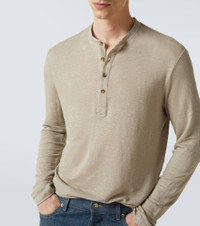 Embrace effortlessness with this classic Henley shirt from Thom Sweeney. Crafted from a breathable linen blend, this long-sleeve design features a refined four-button placket for a timeless touch. Product Details - Material: 96% linen, 4% elastane - Care instructions: hand wash - Made in Italy - Designer color name: Beige Gesso - Item color: brown - Item number: P01034689 Size & Fit - True to size - Designed for a loose fit - Stretchy fabric - Falls to the hip - Height of model is 189cm-74.5" and wears a size L