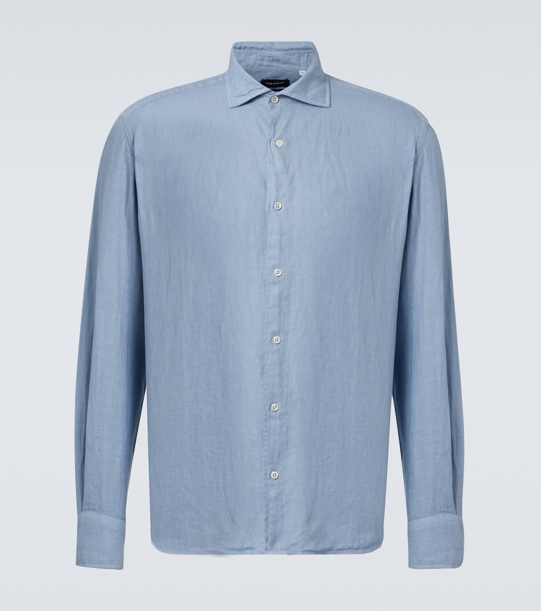 Crafted to perfection, this shirt from Thom Sweeney boasts effortless British flair. It's made from pure linen that's both lightweight and breathable and features a cutaway collar. Product Details - Material: 100% linen - Care instructions: machine wash at 30 degrees - Made in Italy - Designer color name: Denim - Item color: blue - Contains non-textile parts of animal origin - Dress shirt - Collar: spread - Cuff: one button - Item number: P01034590 Size & Fit - True to size - Without pleats in the back - Slim fit - Non-stretchy fabric - Falls to the hip - Height of model is 189cm-74.5" and wears a size 16