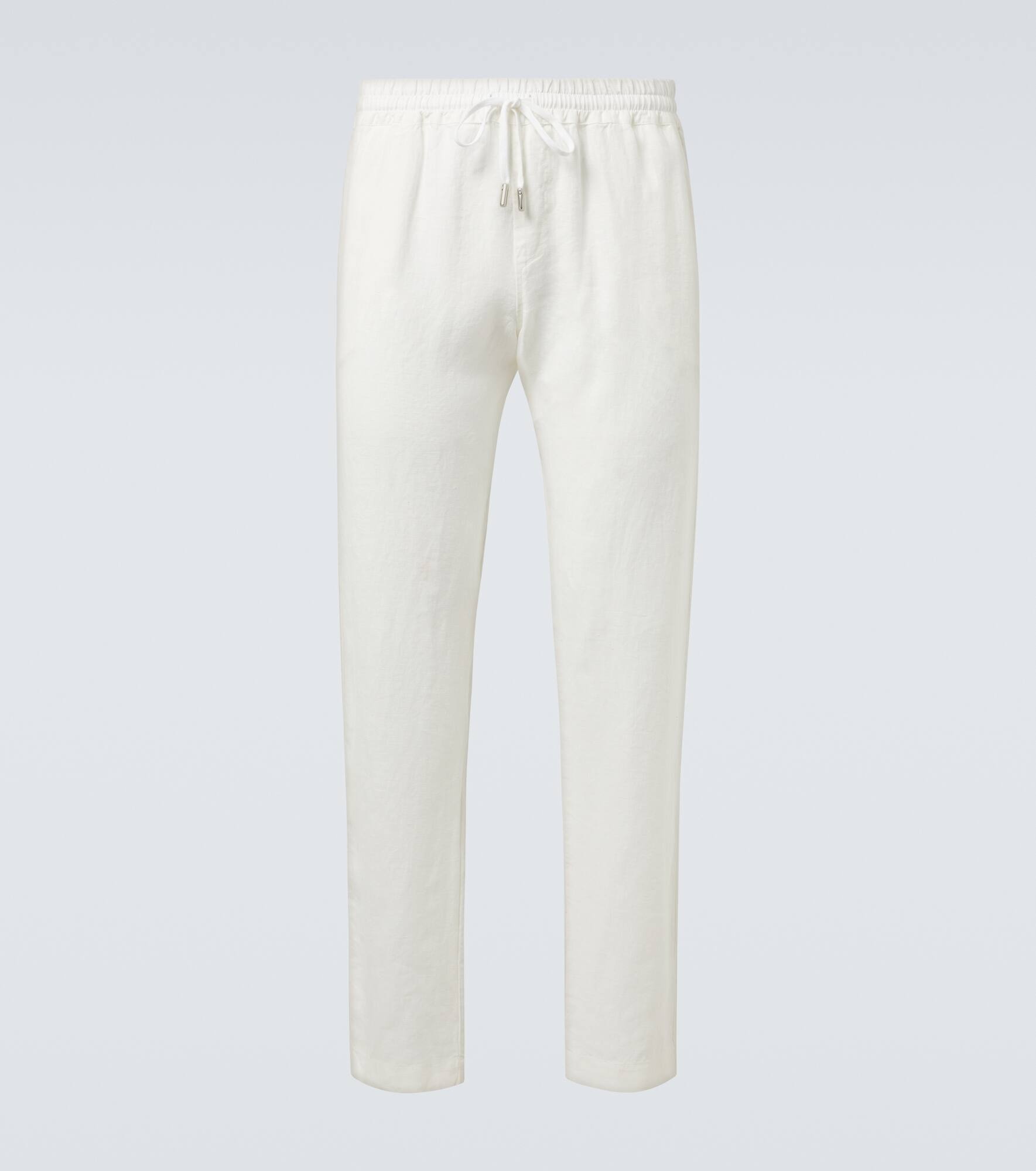 Crafted in Italy, these Thom Sweeney linen straight-leg pants offer effortless refinement. Designed with an elasticated drawstring waist, this design features side slit pockets and back pockets, combining ease and practicality with timeless tailoring. Product Details - Material: 100% linen - Care instructions: hand wash - Made in Italy - Designer color name: White - Item color: white - Pockets: side slit pockets, back pockets - Elasticated drawstring waist - Item number: P01034694 Size & Fit - True to size - Elasticated waist - Adjustable at the waist - Non-stretchy fabric - Straight leg - Height of model is 189cm-74.5" and wears a size L