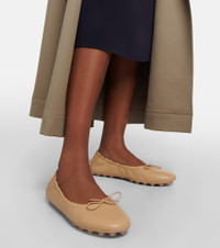 Featuring rubber pebbles that reach up to the heel, the Bubble Ballet flats from Tod's are a signature design. Made from soft leather with a bow and elastic trim, this pair combines style and comfort. Product Details - Lining: leather - Comes with dust bag - Toe shape: round toe - Upper: lamb leather - Sole: leather insole and sole - Designer color name: Beige - Comes with a box - Made in Italy - Closure: elasticated sides - Item number: P00789383 Size & Fit - Fits slightly large to size - we recommend trying a half size smaller - European sizes - 1,5cm-0.5" platform (size EU 38)