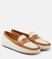 CITY GOMMINO LOAFERS IN FABRIC AND LEATHER - WHITE, BROWN