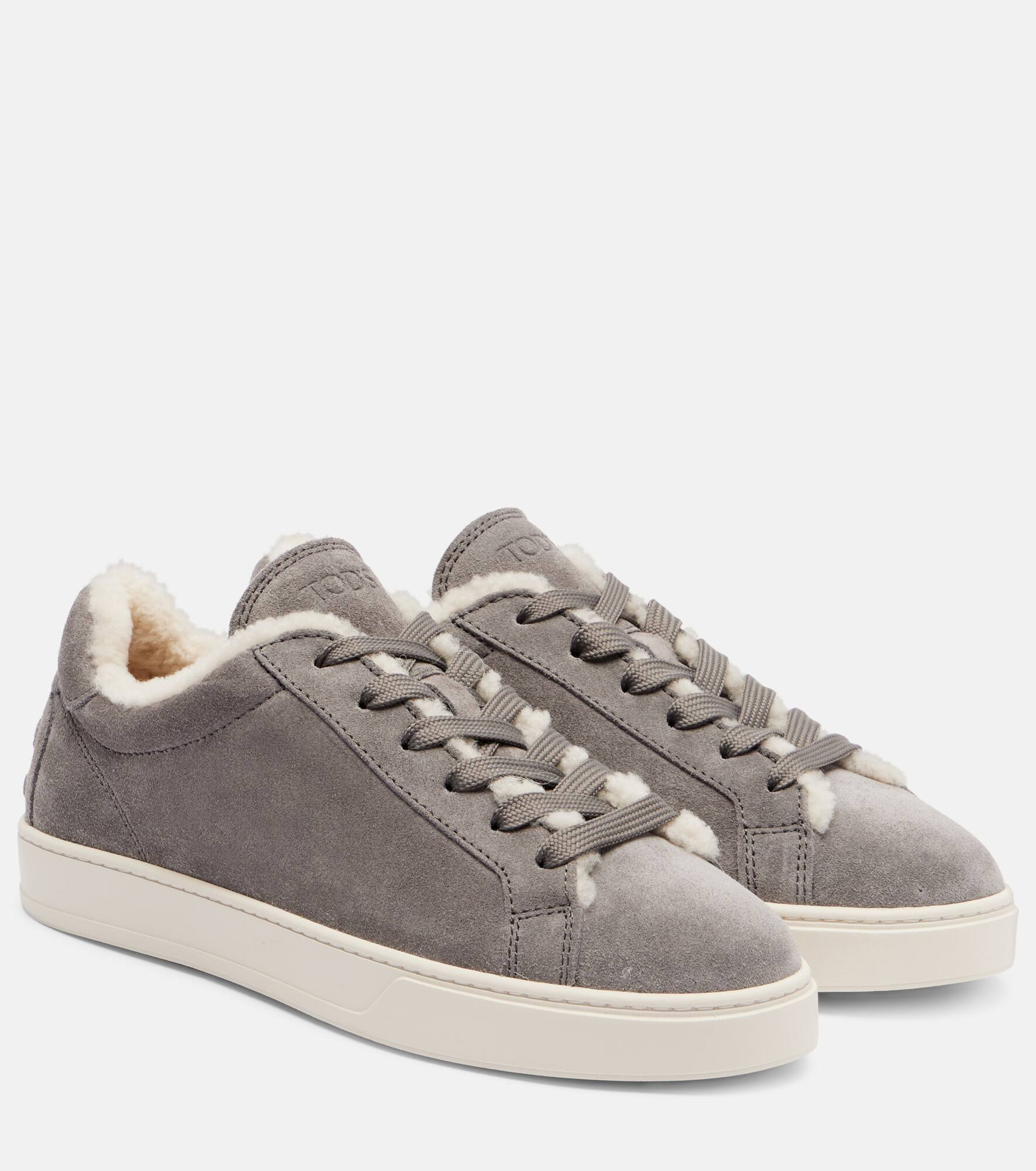 Tod's embodies the art of Italian craftsmanship with superior fabrications and timeless silhouettes that lend a sense of quiet sophistication. Complete with plush shearling lining, the Classic sneakers are made in Italy from sumptuous suede. Product Details - Upper: leather (suede) - Lining: shearling - Sole: shearling insole, rubber sole - Toe shape: round toe - Made in Italy - Includes: extra laces, dust bag, shoe box - Designer color name: Carbone Chiaro+Avorio - Item color: gray - Item number: P01113238 Size & Fit - Fits slightly large to size - we recommend trying a half size smaller - European sizes - 3cm-1" platform (size EU 38)