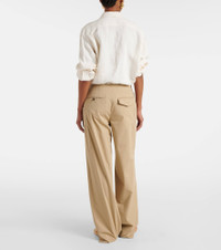 Tod's embodies the art of Italian craftsmanship with superior fabrications and timeless silhouettes that lend a sense of quiet sophistication. Made from pure cotton poplin, these wide-leg pants feature a drawstring waistband and large front pockets. Product Details - Material: 100% cotton - Care instructions: hand wash - Made in Italy - Designer color name: Cammello Scuro - Item color: beige - Closure: concealed button placket, drawstring top - Pockets: slit pockets, back pockets - Item number: P01025639 Size & Fit - True to size - Sizing adapted to taller women - Adjustable at the waist - Non-stretchy fabric - Wide-leg - The model seen in the picture is 178cm-5'10" and wearing a size IT 40