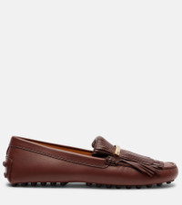 Gommino is Italian for "rubber pad", referring to the pebbled soles and heel counters of Tod's iconic loafers. The house-signature details appear on these fringed driving shoes, which are expertly crafted from smooth leather. Product Details - Upper: leather - Lining: leather - Sole: leather insole, signature pebbled rubber sole - Toe shape: round toe - Made in Italy - Includes: shoe box - Designer color name: Mogano - Item color: brown - Hardware color: gold - Item number: P01073507 Size & Fit - True to size - European sizes