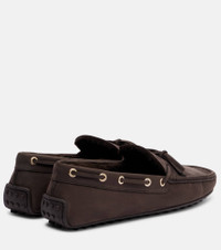 Tod's embodies the art of Italian craftsmanship with superior fabrications and timeless silhouettes. Made in Italy from suede with a plush shearling lining, the Gommino boat shoes are adorned with the brand's signature pebbled soles. Product Details - Upper: leather (suede) - Lining: shearling - Sole: leather insole, signature pebbled rubber sole - Toe shape: round toe - Made in Italy - Includes: dust bag, shoe box - Designer color name: Altraversione - Item color: brown - Item number: P01102229 Size & Fit - True to size - European sizes