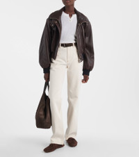 Tod's embodies the art of Italian craftsmanship with superior fabrications and timeless silhouettes that lend a sense of quiet sophistication. These jeans have a high-rise waist and straight legs. Product Details - Material: 100% cotton - Care instructions: machine wash at 30 degrees - Made in Italy - Designer color name: Bianco Latte - Item color: white - Trim: 100% leather - Contains non-textile parts of animal origin - Pockets: five pockets - Belt loops - Item number: P01069713 Size & Fit - Fits large to size - we recommend trying one size smaller - Non-stretchy fabric - Straight leg - High-rise - The model seen in the picture is 178cm-5'10" and wearing a size IT 38