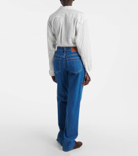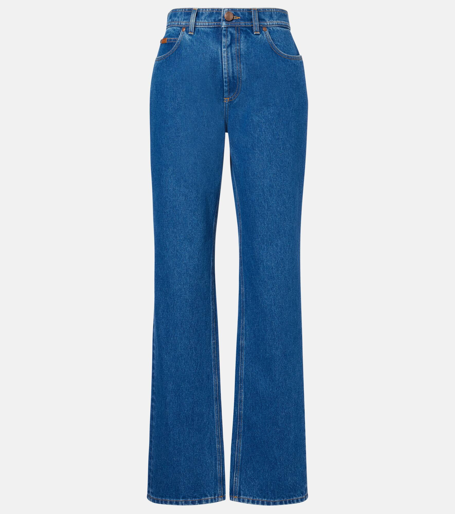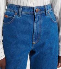 Tod's embodies the art of Italian craftsmanship with superior fabrications and timeless silhouettes that lend a sense of quiet sophistication. These jeans have a high-rise waist and straight legs. Product Details - Material: 100% cotton - Care instructions: machine wash at 30 degrees - Made in Italy - Designer color name: Bluette Medio - Item color: blue - Trim: 100% leather - Dye: medium - Pockets: five pockets - Belt loops - Closure: zipper fly, button fastening - Item number: P01069711 Size & Fit - Fits large to size - we recommend trying one size smaller - Non-stretchy fabric - Straight leg - High-rise - The model seen in the picture is 178cm-5'10" and wearing a size IT 38