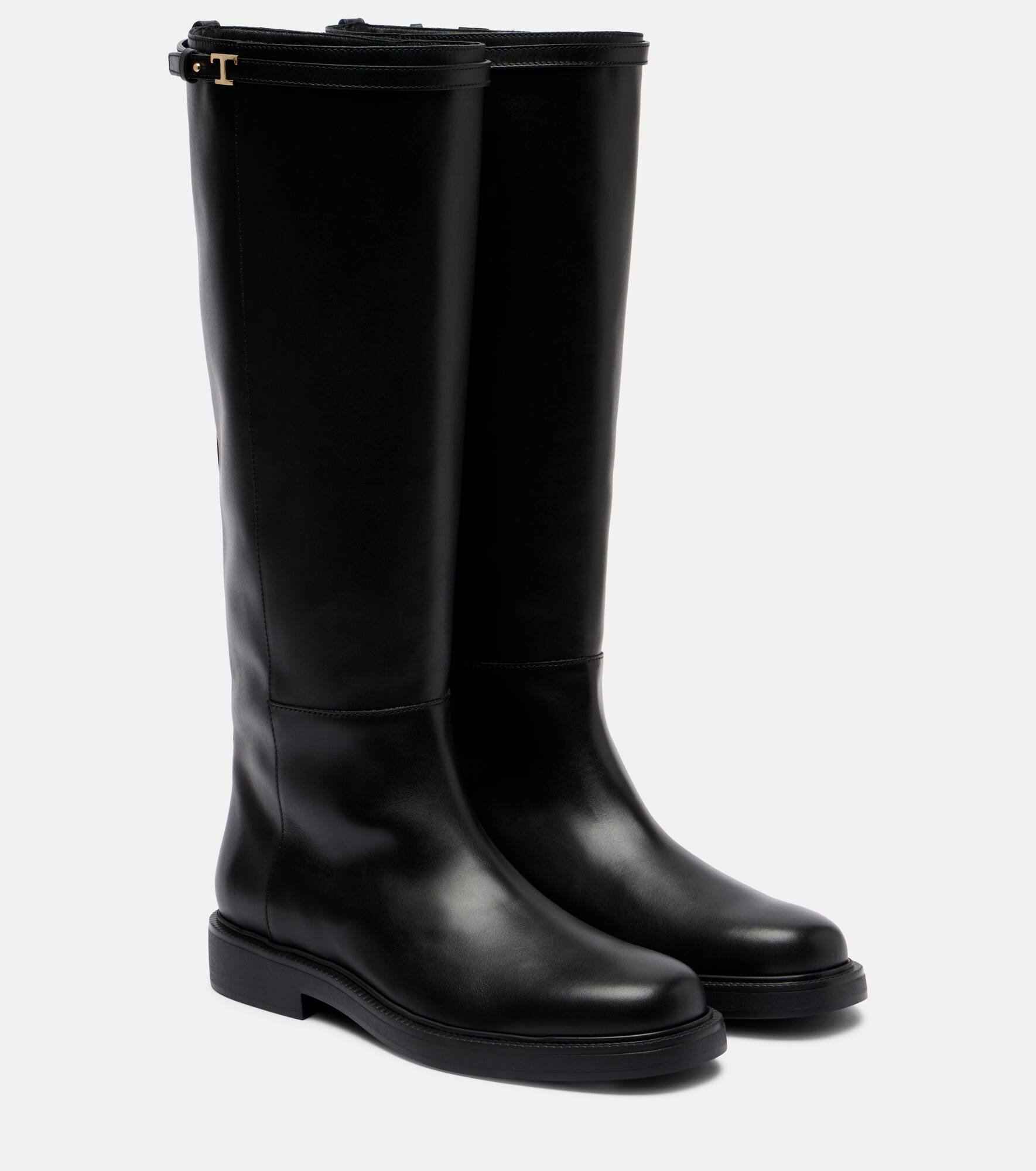 Tod's brings Italian elegance to timeless shoe silhouettes such as knee-high boots. Made from leather, this pair has round toes and rubber soles. Product Details - Upper: leather - Lining: leather - Sole: leather insole, rubber sole - Toe shape: round toe - Made in Italy - Includes: dust bag, shoe box - Designer color name: Nero - Item color: black - Hardware color: gold - Item number: P01073734 Size & Fit - True to size - European sizes - 3cm-1" heel (size EU 38) - 2cm-1" platform (size EU 38)