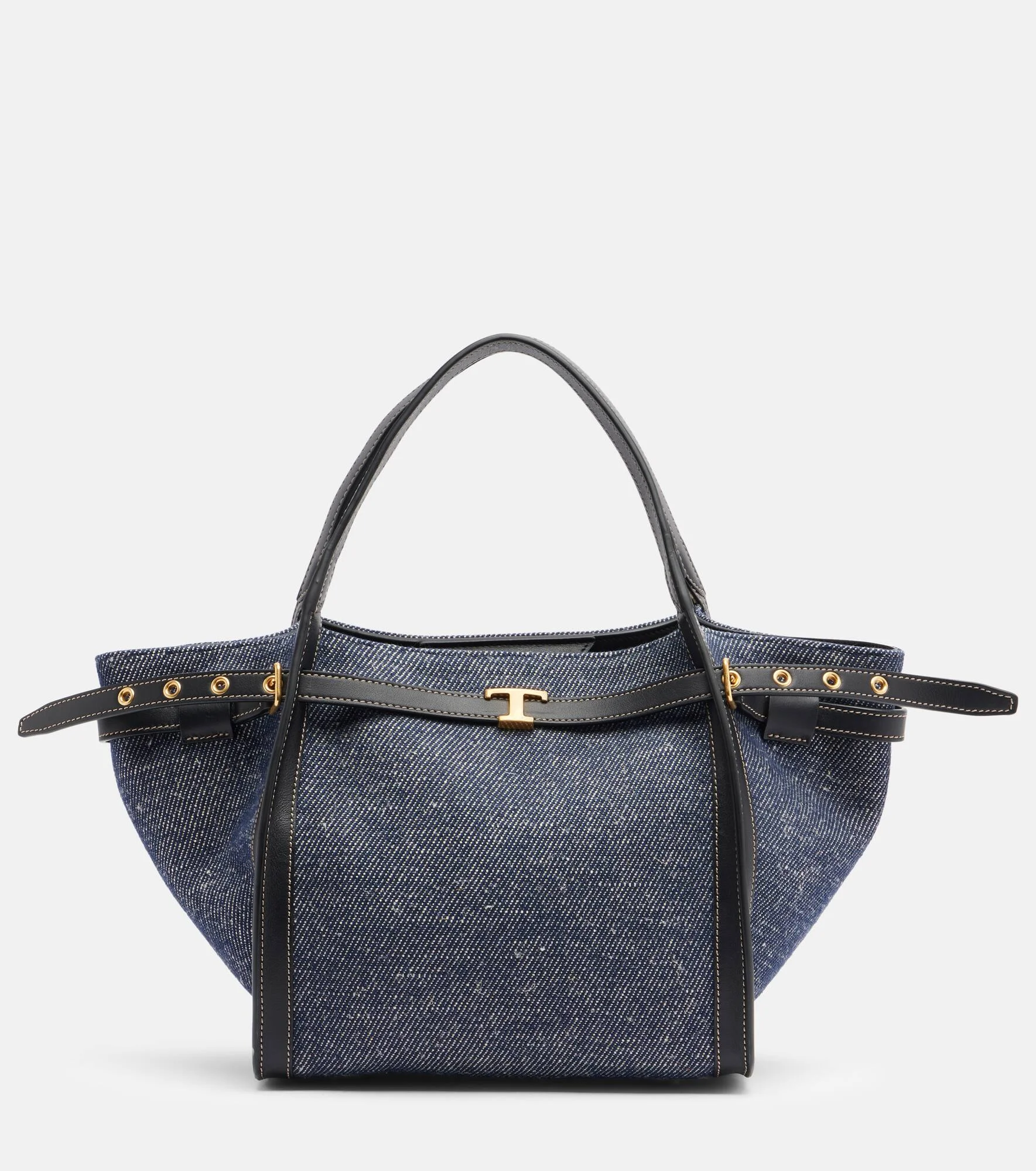 Tod's embodies the art of Italian craftsmanship with superior fabrications and timeless silhouettes that lend a sense of quiet sophistication. This tote bag is crafted from blue-hued canvas and boasts supple leather trims and a detachable shoulder strap. Product Details - Material: fabric - Lining: suede - Made in Italy - Color: blue - Designer color name: Blu Denim Chiaro+Nero - Trim: leather - Closure: hook-fastening tab at open top - Top handles, Detachable shoulder strap - Internal details: internal zipped pocket - Includes: dust bag - Item number: P01129340 Size & Fit - Height 21,5cm-8.5" - Min. width 22,5cm-9" - Max. width 39cm-15.5" - Depth 14cm-5.5" - Length of handles 32,5cm-13" - Adjustable shoulder strap - Min. length shoulder strap 93cm-36.5" - Max. length shoulder strap 117cm-46"