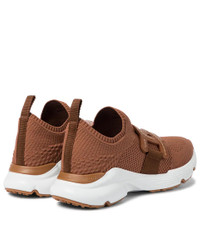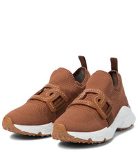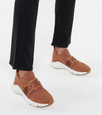The endless appeal of these brown sneakers from Tod's get our seal of approval – wear them to the office and while running errands on weekends. The uppers are made from technical knit and trimmed in topstitched leather worked into the shape of the house's signature hardware. Finally, white rubber soles are pebbled for traction and support. Product Details - Upper: fabric - Lining: fabric - Sole: fabric insole, rubber sole - Toe shape: round toe - Made in Italy - Includes: shoe box - Designer color name: Beige - Trim: leather - Item number: P00558589 Size & Fit - Fits slightly large to size - we recommend trying a half size smaller - Stretchy fabric - European sizes - 3cm-1" platform (size EU 38) - 5,5cm-2" wedge heel (size EU 38)