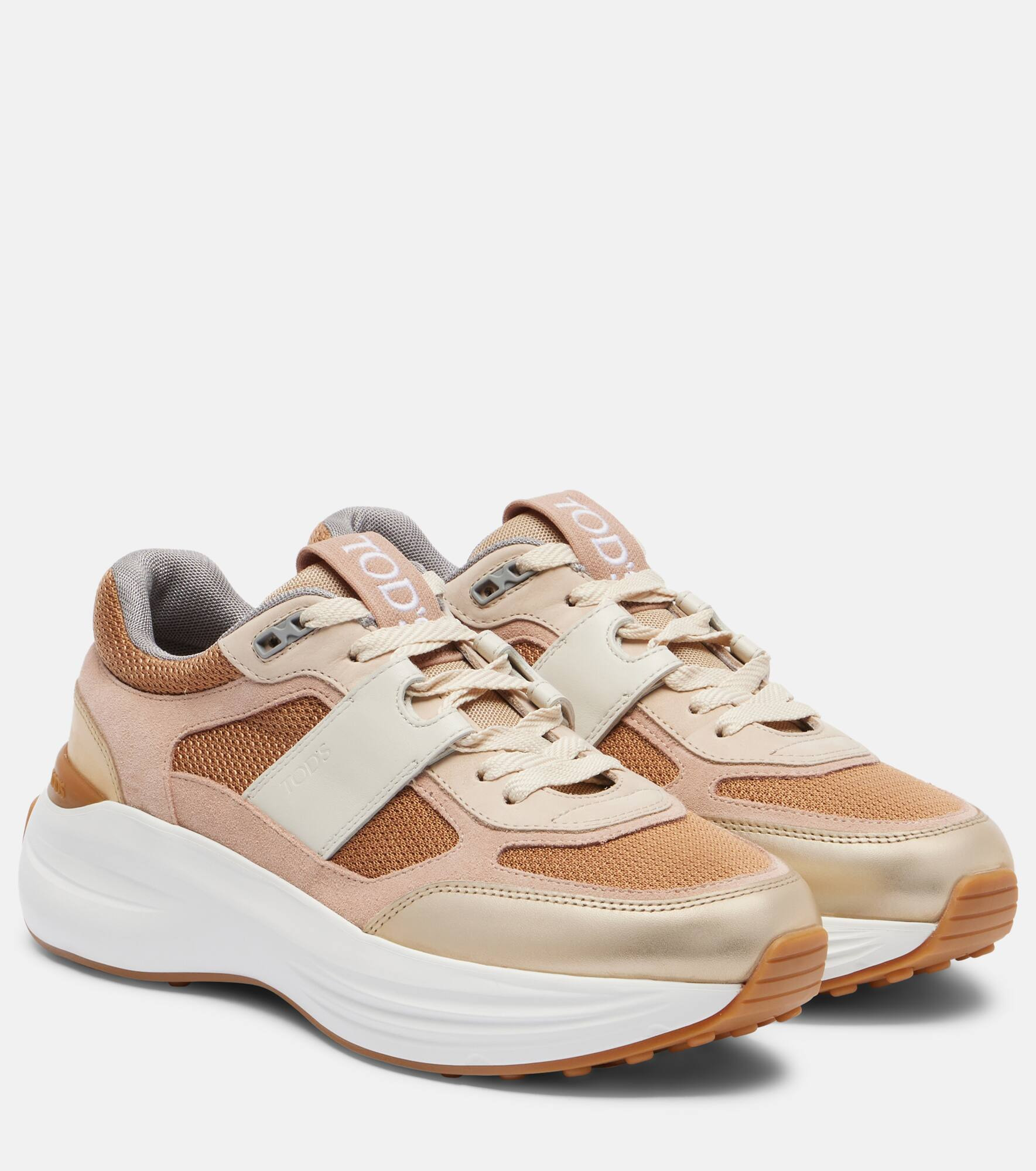 Tod's embodies the art of Italian craftsmanship with superior fabrications and timeless silhouettes that lend a sense of quiet sophistication. Perfect for casual days, these sneakers feature golden leather trims and sit on thick, cushioned soles. Product Details - Upper: leather, fabric - Lining: fabric - Sole: fabric insole, rubber sole - Toe shape: almond toe - Made in Italy - Includes: shoe box, dust bag, extra laces - Designer color name: Oro+Cammello C. - Item color: gold, beige - Item number: P01073737 Size & Fit - True to size - European sizes - 4cm-1.5" platform (size EU 38) - 6cm-2.5" wedge heel (size EU 38)
