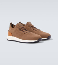 SOCK SNEAKERS IN TECHNICAL FABRIC AND LEATHER - BROWN