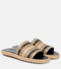 Tod's embodies the art of Italian craftsmanship with superior fabrications and timeless silhouettes that lend a sense of quiet sophistication. Designed for sunny-day outings, these slides feature a striped strap. Product Details - Upper: fabric - Lining: leather - Sole: leather insole, rubber sole - Toe shape: round open toe - Made in Italy - Includes: shoe box - Designer color name: Talpa Chiara - Item color: multicolor - Item number: P01048136 Size & Fit - Fits slightly large to size - we recommend trying a half size smaller - European sizes - 2,5cm-1" platform (size EU 38)