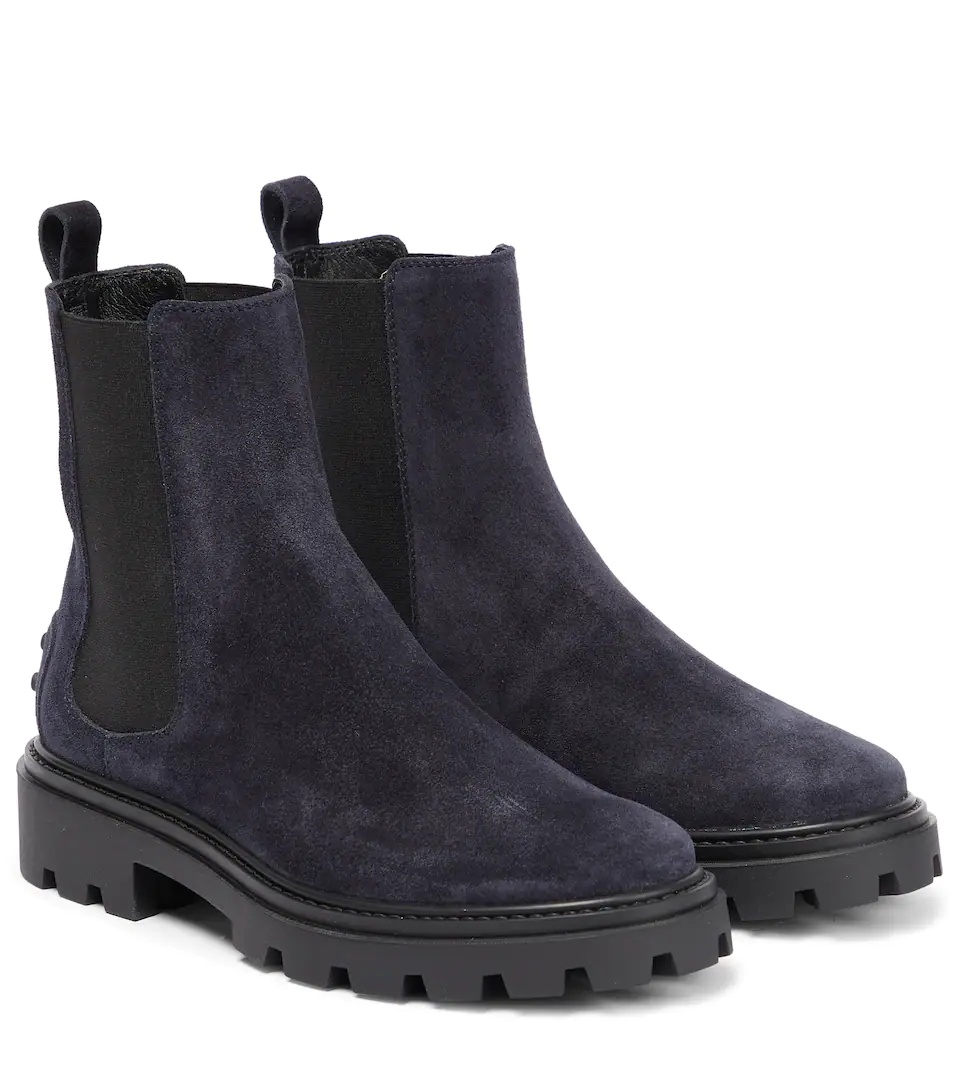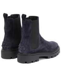 A vibrant iteration of a straightforward design, Tod's Chelsea boots in blue will compliment most outfits. They're made from smooth suede with rubber pebble detailing, elasticated gussets and lugged rubber soles. Product Details - Lining: leather, fabric - Closure: elasticated sides - Sole: leather insole, rubber sole - Toe shape: round toe - Comes with a box - Made in Italy - Designer color name: Navy - Comes with dust bag - Upper: calf leather - Trim: fabric - Item number: P00700614 Size & Fit - True to size - Slightly wide at the toe - European sizes - 4cm-1.5" heel (size EU 38) - 2,5cm-1" platform (size EU 38)