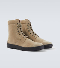Tod's embodies the art of Italian craftsmanship with superior fabrications and timeless silhouettes, such as these combat boots. Built from gray suede, the lace-up pair features chunky rubber soles with embossed rubber pads. Product Details - Upper: calf leather (suede) - Lining: leather - Sole: leather insole, rubber sole - Toe shape: round toe - Made in Italy - Includes: shoe box, dust bag - Designer color name: Torba + Fondo Antracite - Item color: gray - Item number: P01068896 Size & Fit - True to size - UK sizes