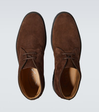 Tod's embodies the art of Italian craftsmanship with superior fabrications and timeless silhouettes that lend a sense of quiet sophistication. Made from soft suede, these desert boots will take you from office to the weekend seamlessly. The versatile design rests on studded rubber soles with logo-embossed detailing. Product Details - Sole: leather insole, rubber sole - Comes with dust bag - Upper: leather - Closure: lace-up - Made in Italy - Comes with a box - Toe shape: round toe - Item number: P00828534 Size & Fit - True to size - UK sizes