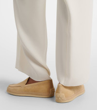 Raffia-trimmed suede loafers Beige
