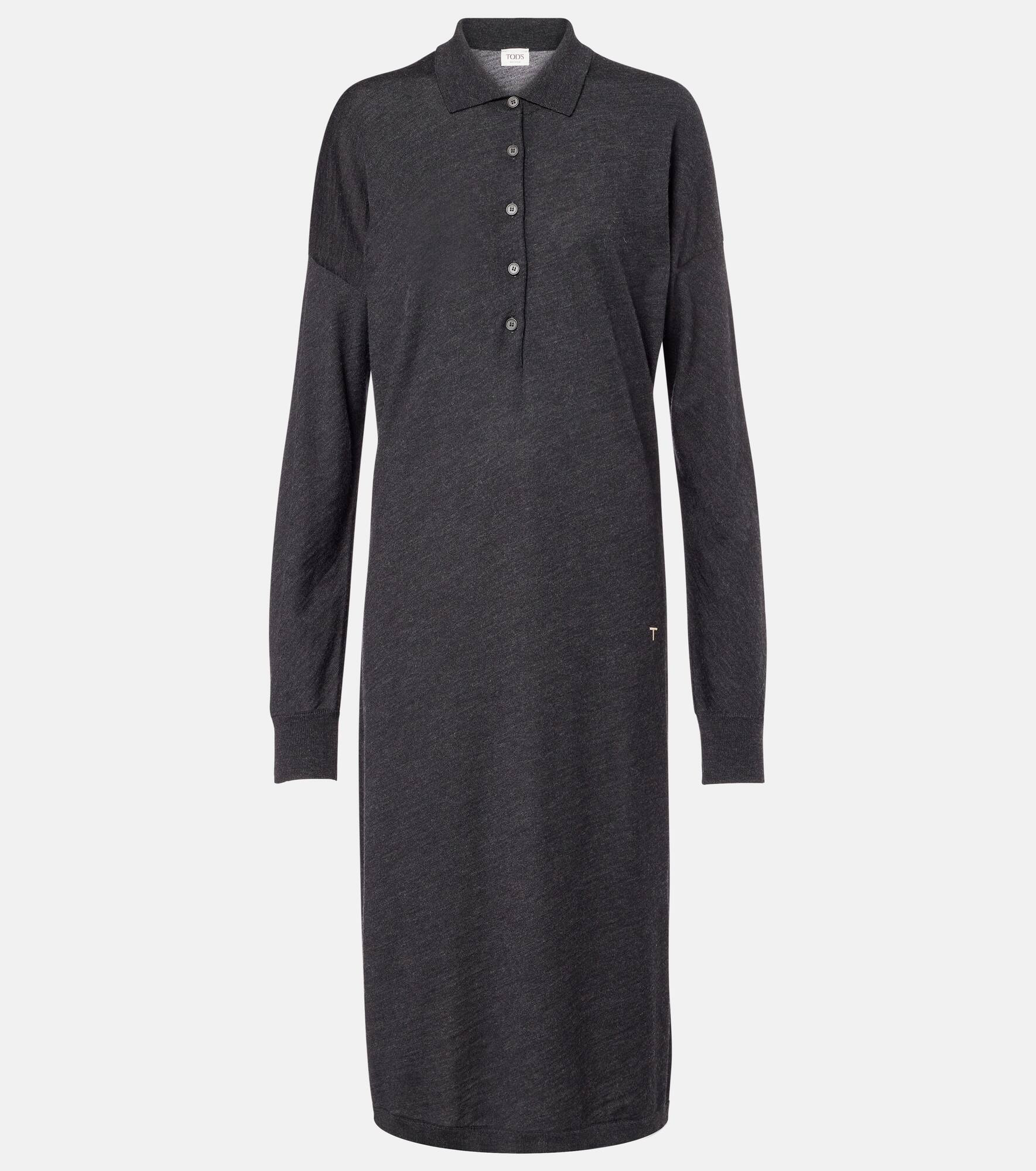 Tod's embodies the art of Italian craftsmanship with superior fabrications and timeless silhouettes that lend a sense of quiet sophistication. This polo dress is knitted from fine wool and silk yarns and features a midi length and ribbed trims. Product Details - Material: 70% wool, 30% silk - Care instructions: hand wash - Made in Italy - Designer color name: Black - Item color: gray - Contains non-textile parts of animal origin - Collar: polo collar - Closure: partially buttoned front - Cuff: ribbed - Hem: ribbed - Item number: P01069715 Size & Fit - True to size - Dropped shoulders - Straight fit - Stretchy fabric - The model seen in the picture is 178cm-5'10" and wearing a size XS