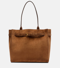 Crafted in Italy from buttery suede, the Audrey tote bag from Tom Ford showcases the signature T motif in gold-tone hardware. This piece features a single compartment and an internal zipped pocket. Product Details - Material: calf leather - Lining: fabric - Made in Italy - Designer color name: Whisky - Item color: brown - Internal details: internal zipped pocket - Top handles - Includes: dust bag - Item number: P01038694 Size & Fit - Height 29cm-11.5" - Width 33cm-13" - Depth 18cm-7" - Length of handle 58cm-23"