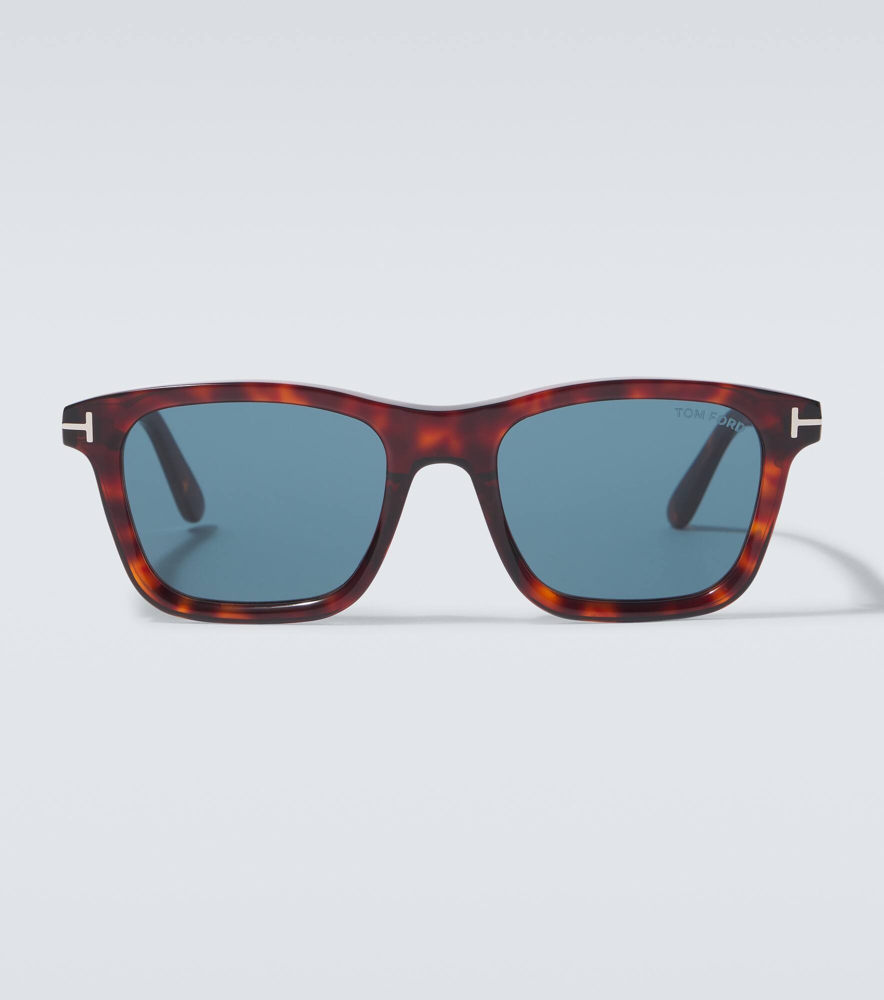 The Barron square sunglasses from Tom Ford feature the brand's signature T logo on the temples. These sunglasses also feature a subtle tortoiseshell pattern all over. Product Details - Frame material: acetate - Frame color: brown - Lens filter category 3 - Lens color: blue - Made in Italy - Includes: case and presentation box, cleaning cloth - Designer color name: Red Havana/Blue - Item number: P01006166 Size & Fit - Lens width: 54mm-2.15" - Bridge size: 20mm-0.8" - Earpiece length: 145mm-5.7"