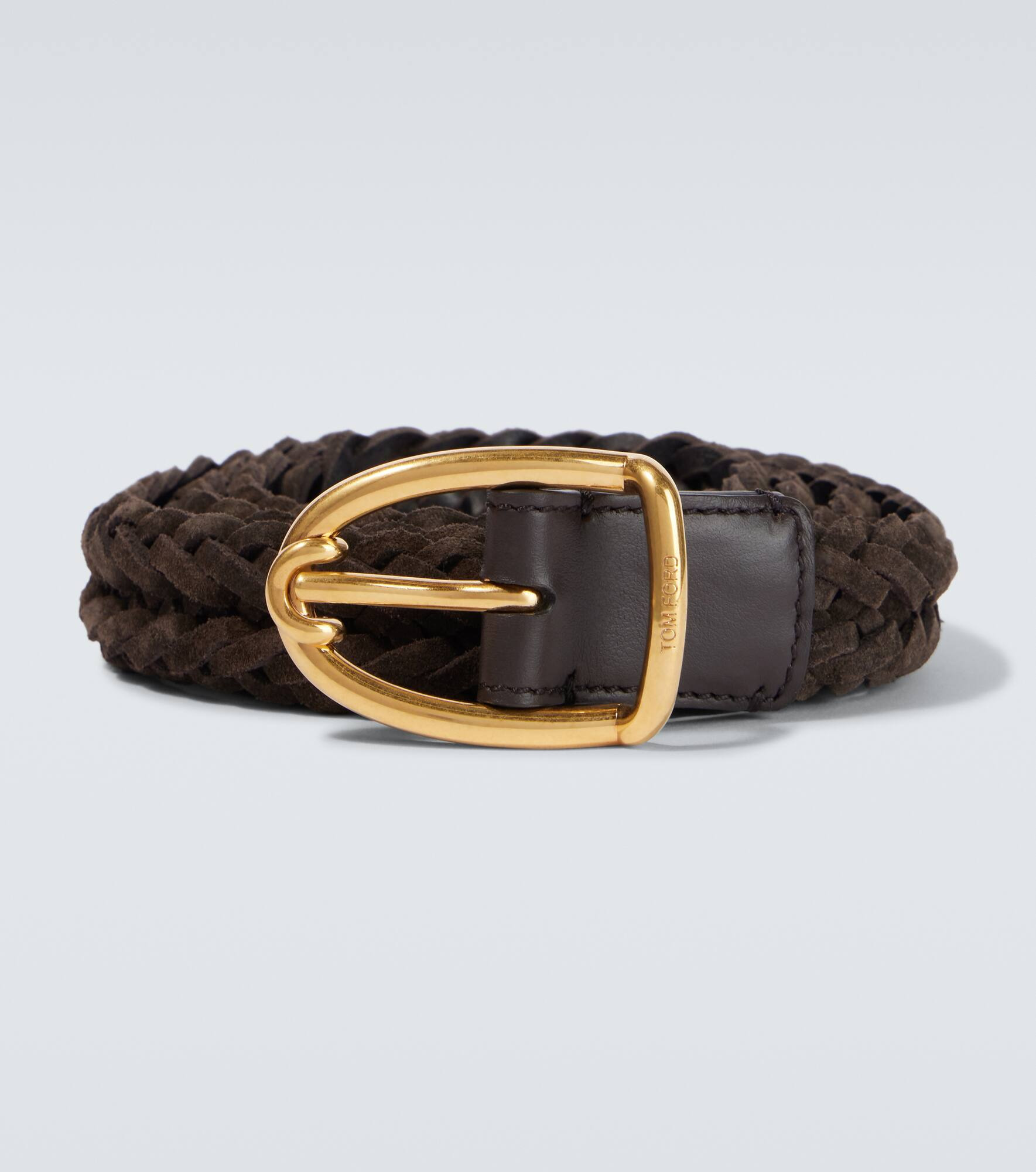 This Tom Ford belt showcases meticulous attention to detail with a dose of laid-back polish. Its unique braided design is crafted from buttery soft suede and finished off with a gold-toned buckle. Product Details - Material: 100% calf leather (suede) - Care instructions: specialist clean - Made in Italy - Designer color name: Chocolate - Item color: brown - Item number: P01042732 Size & Fit - Width 2,5cm-1" - Buckle width 3,5cm-1.5"