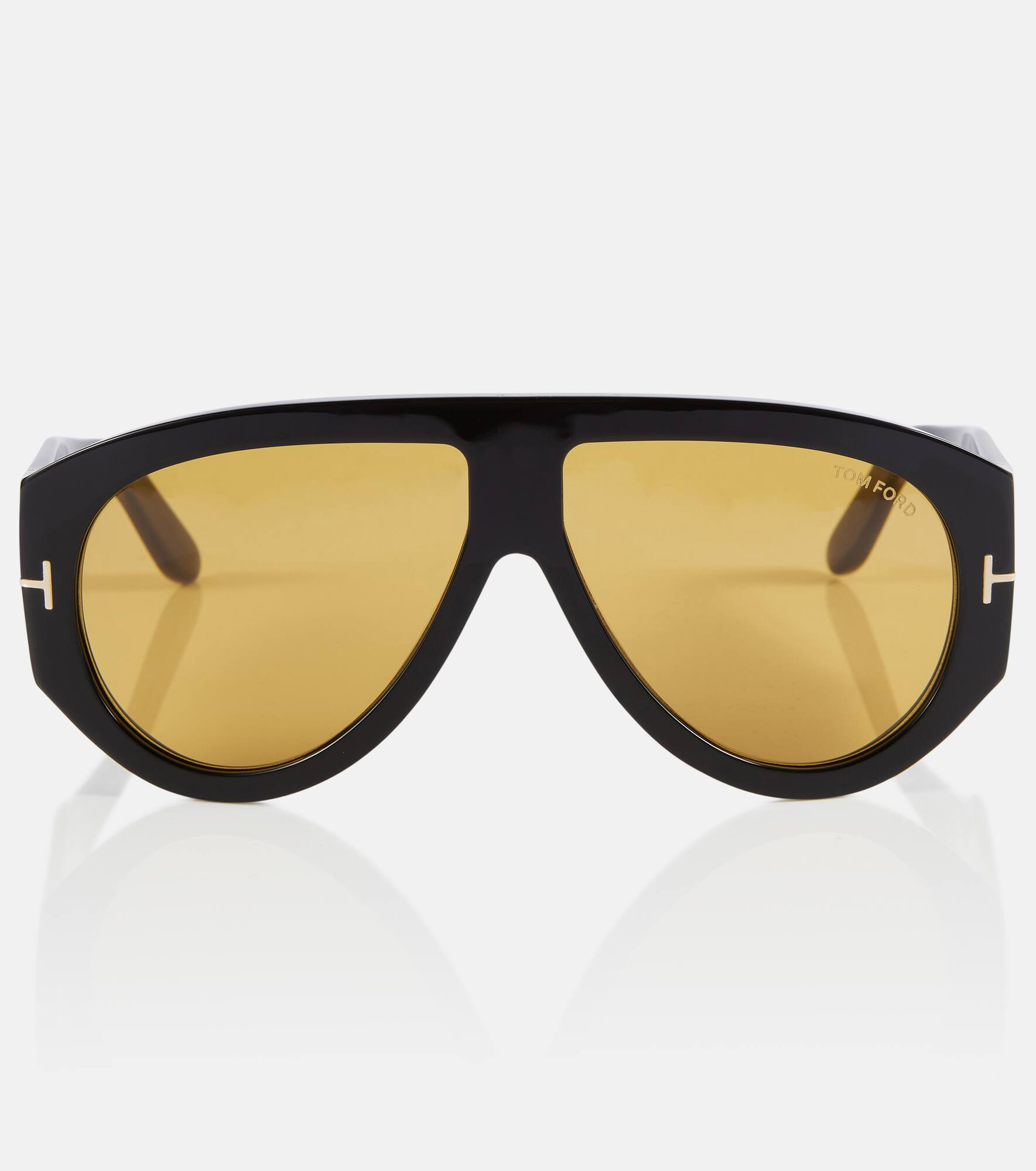 The Bronson sunglasses from Tom Ford are a bold design defined by thick acetate frames in an aviator-inspired silhouette. Fitted with yellow-tinted lenses, the style has gold-toned T detailing along the hinges. Product Details - Made in Italy - Frame color: black - comes in a logo-embossed hard case, The color of the case may vary - Frame material: acetate - comes with cleaning cloth - Lens filter category 2 - Lens color: yellow - Item number: P00782472 Size & Fit - Lens width: 60mm-2.35" - Bridge size: 12mm-0.45" - Earpiece length: 140mm-5.5"
