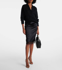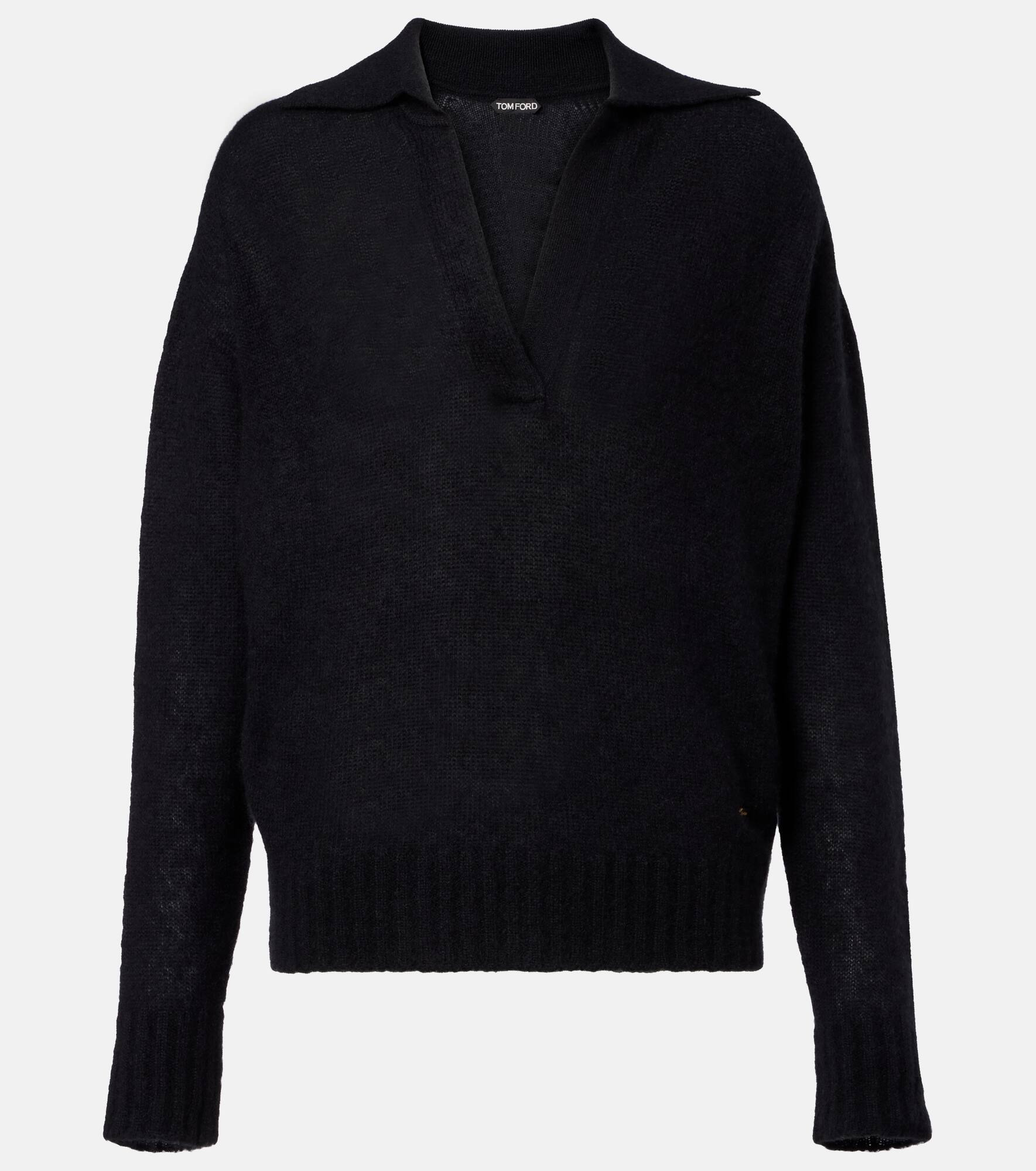 Focused on detail and impeccable construction, Tom Ford’s designs speak through simplicity and high-quality materials. This polo sweater is crafted in Italy from cashmere and silk and is shaped with a relaxed silhouette and a V-neckline. Product Details - Material: 74% cashmere, 26% silk - Care instructions: dry clean - Made in Italy - Designer color name: Black - Item color: black - Collar: shawl neck - Item number: P01053624 Size & Fit - True to size - Dropped shoulders - Designed for a loose fit - Stretchy fabric - Falls below the hip - The model seen in the picture is 178cm-5'10" and wearing a size XS