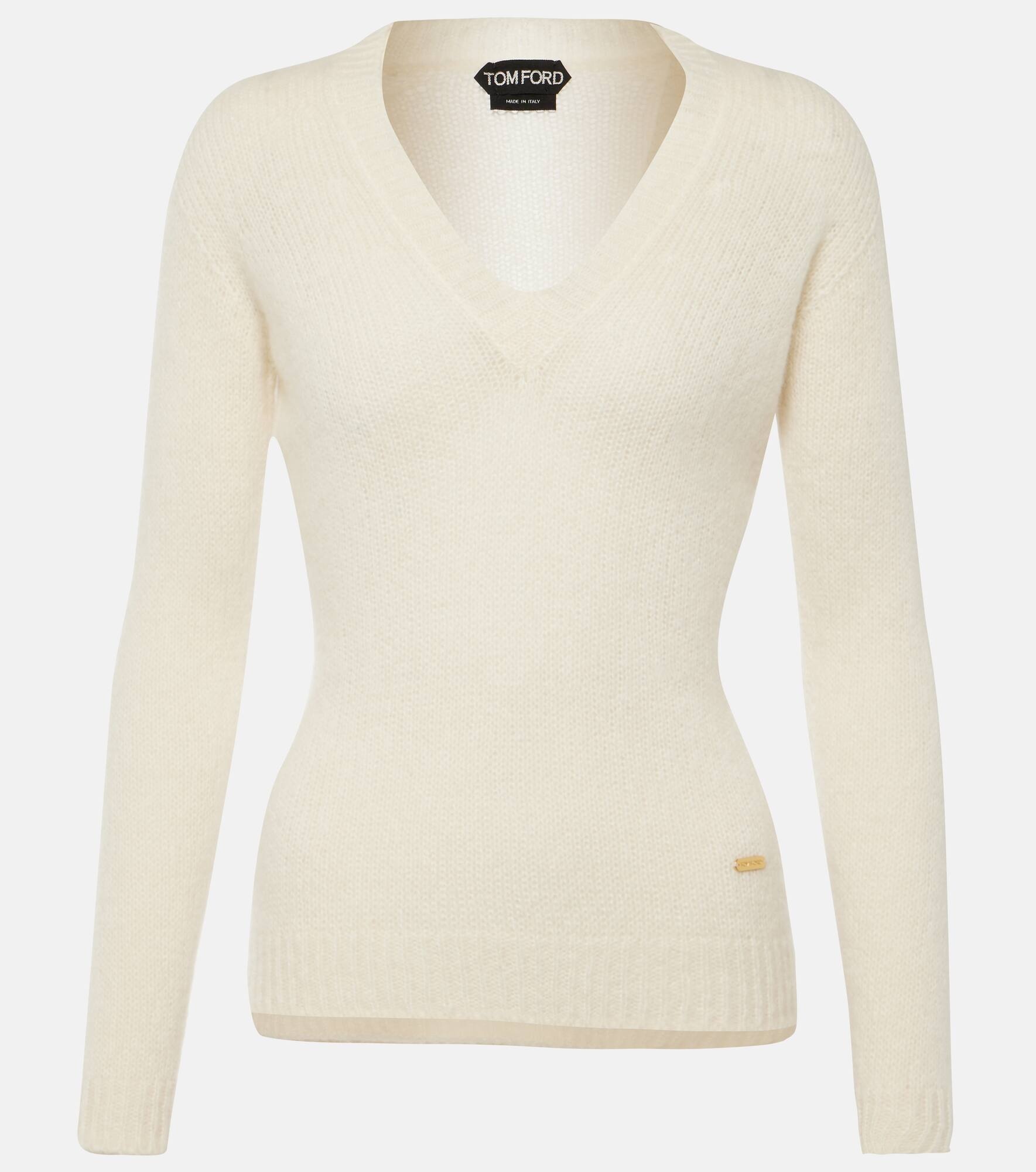 Product Details - Material: 74% cashmere, 26% silk - Care instructions: hand wash - Made in Italy - Designer color name: Off White - Collar: V-neck - Cuff: ribbed - Hem: ribbed - Item number: P00956592 Size & Fit - True to size - Dropped shoulders - Designed for a loose fit - Slightly stretchy fabric - Falls to the hip - The model seen in the picture is 178cm-5'10" and wearing a size XS