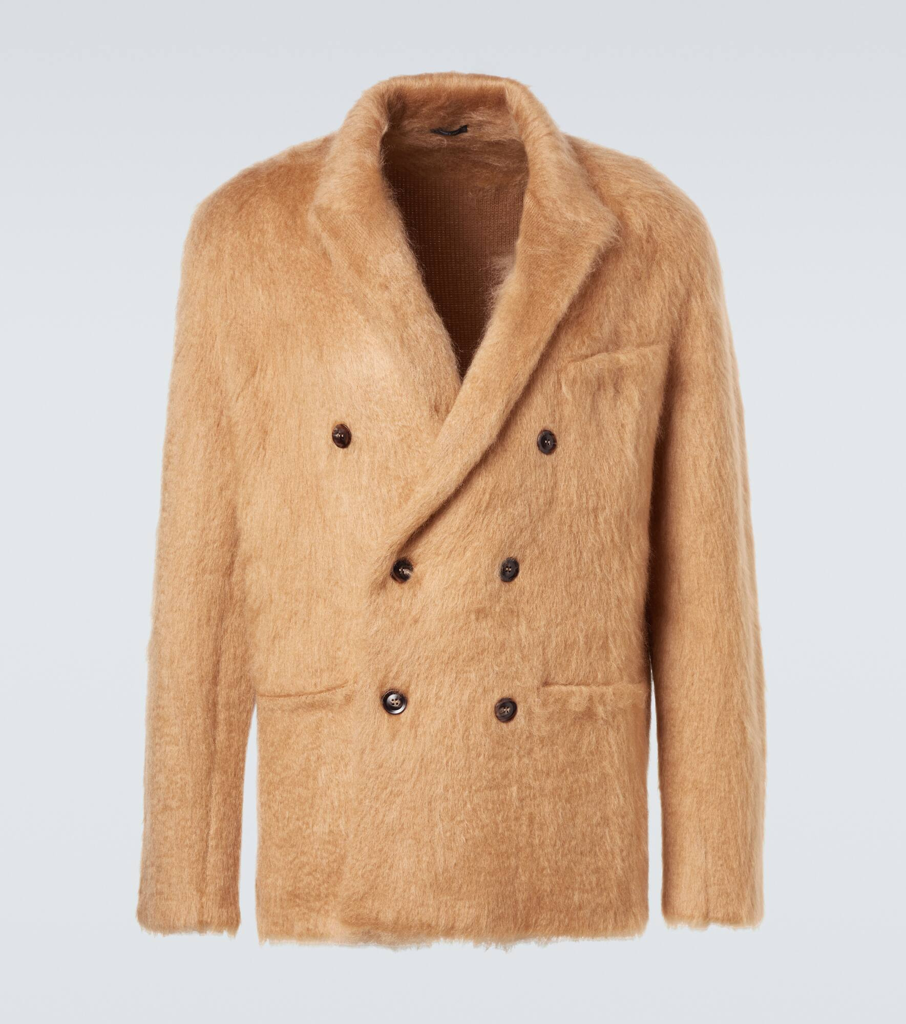 Tom Ford’s tailoring showcases meticulous attention to detail with a dose of high-octane glamour. Crafted from a fluffy blend of cashmere, mohair, and silk, this blazer features a classic, double-breasted silhouette. Product Details - Material: 50% cashmere, 35% mohair, 15% silk - Care instructions: dry clean - Made in Italy - Designer color name: Camel Beige - Item color: beige - Contains non-textile parts of animal origin - Peak lapel - Closure: double-breasted (six buttons) - Pockets: patch pockets - Item number: P01060796 Size & Fit - Fits large to size - we recommend trying one size smaller - Straight fit - Non-stretchy fabric - Falls below the hip - The model in the picture is 185cm-6'1" and wearing a size IT 48