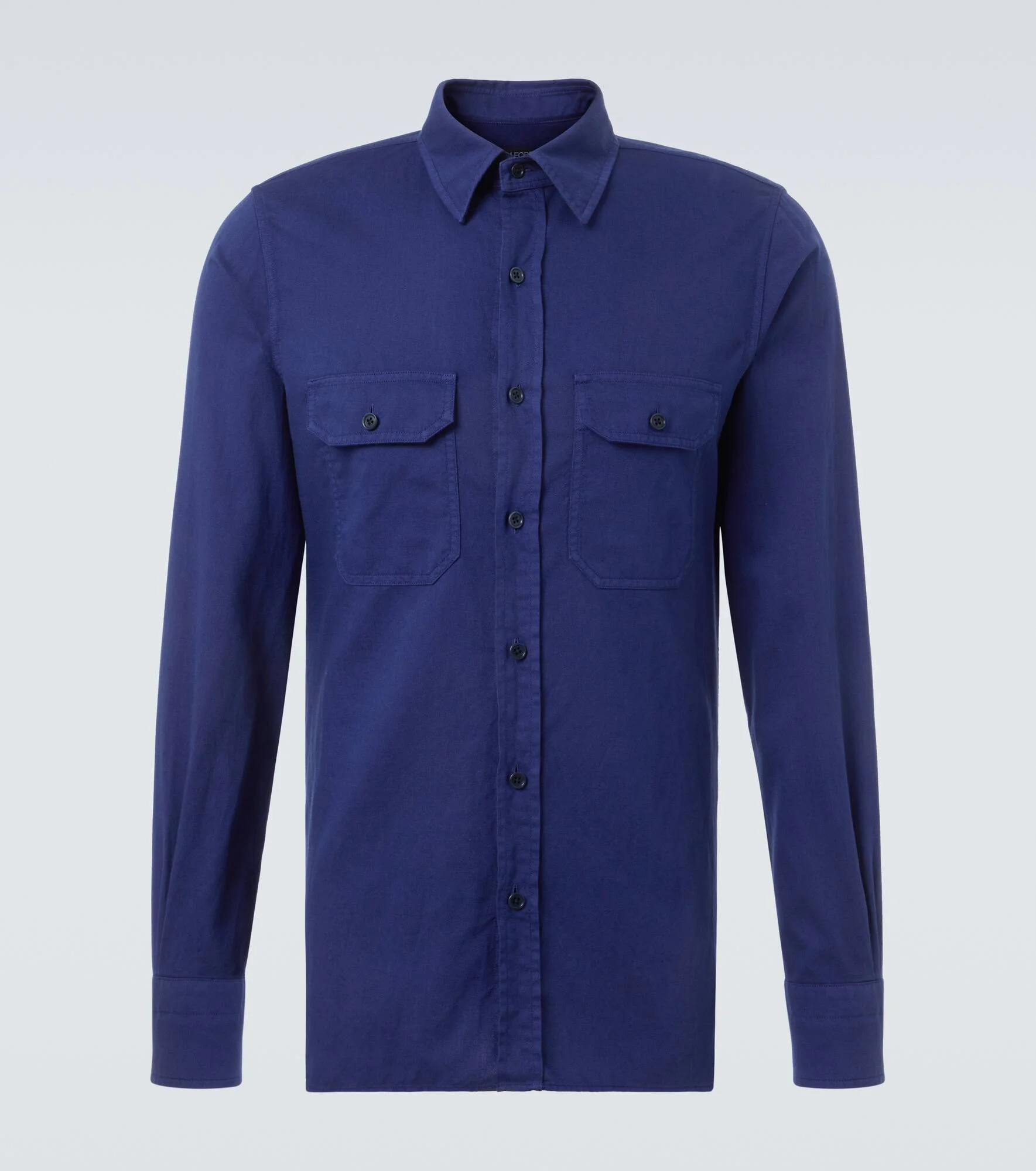 Inspired by utilitarian codes, this shirt from Tom Ford is primed for casual looks. The style is made from cotton and linen drill with patch pockets on the chest and boasts a regular fit. Product Details - Material: 64% cotton, 36% linen - Care instructions: dry clean - Made in Italy - Color: blue - Designer color name: Ocean Cavern - Collar: classic (Straight point) - Closure: buttoned front - Pockets: flap chest pockets - Cuff: one button - Item number: P01097213 Size & Fit - True to size - Without pleats in the back - Classic fit - Non-stretchy fabric - Falls below the hip - The model in the picture is 185cm-6'1" and wearing a size EU 41