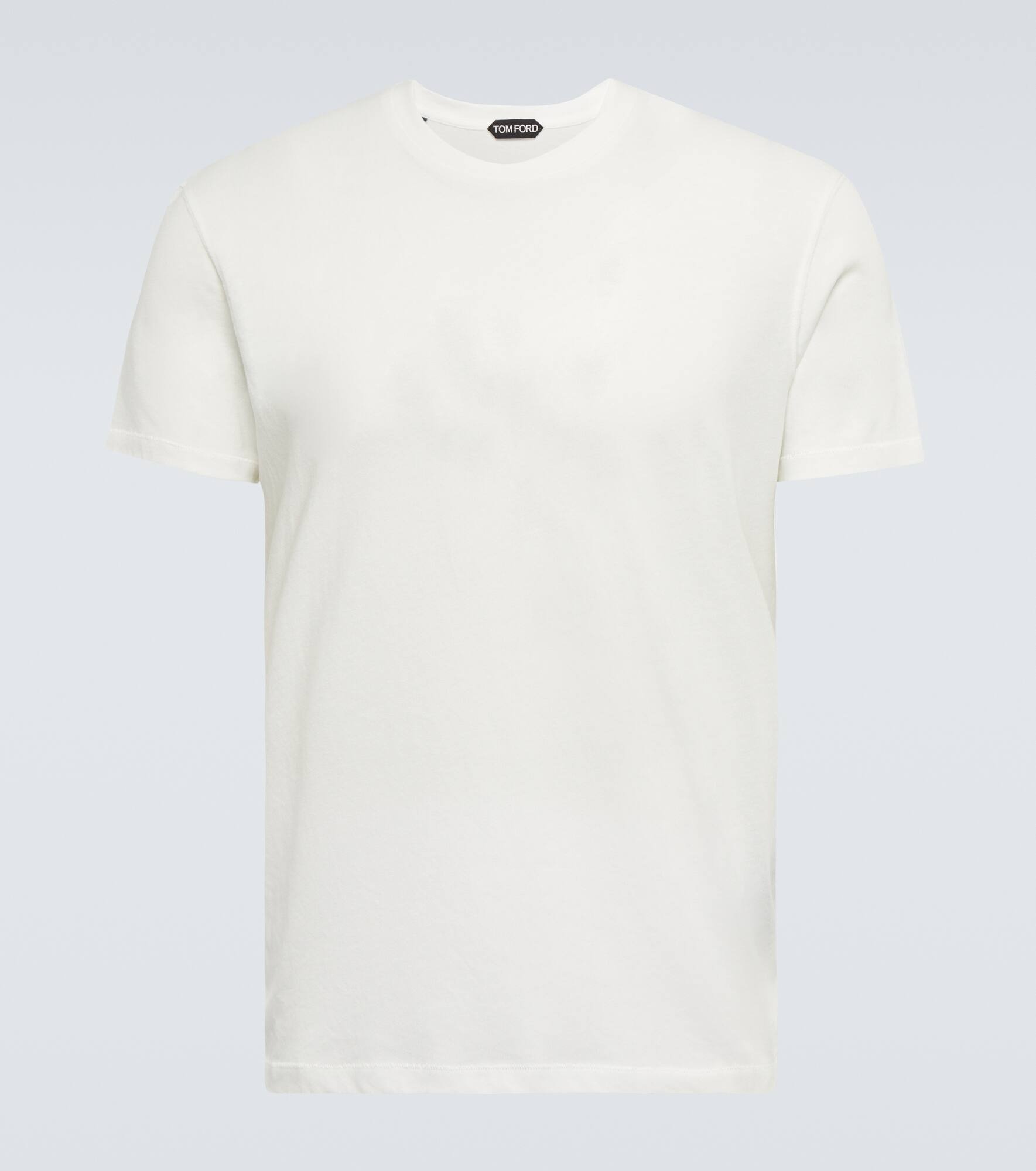 Invest in new wardrobe staples like this white Tom Ford jersey T-shirt. Made from a cotton blend, this piece has a relaxed fit, a mélange finish, and TF embroidery at the hem. Product Details - Care instructions: machine wash at 30 degrees - Material: 50% cotton, 50% polyester - Made in Portugal - Designer color name: White - Item number: P00738019 Size & Fit - True to size - Straight fit - Mid-weight material - Falls to the hip - The model in the picture is 185cm-6'1" and wearing a size IT 48