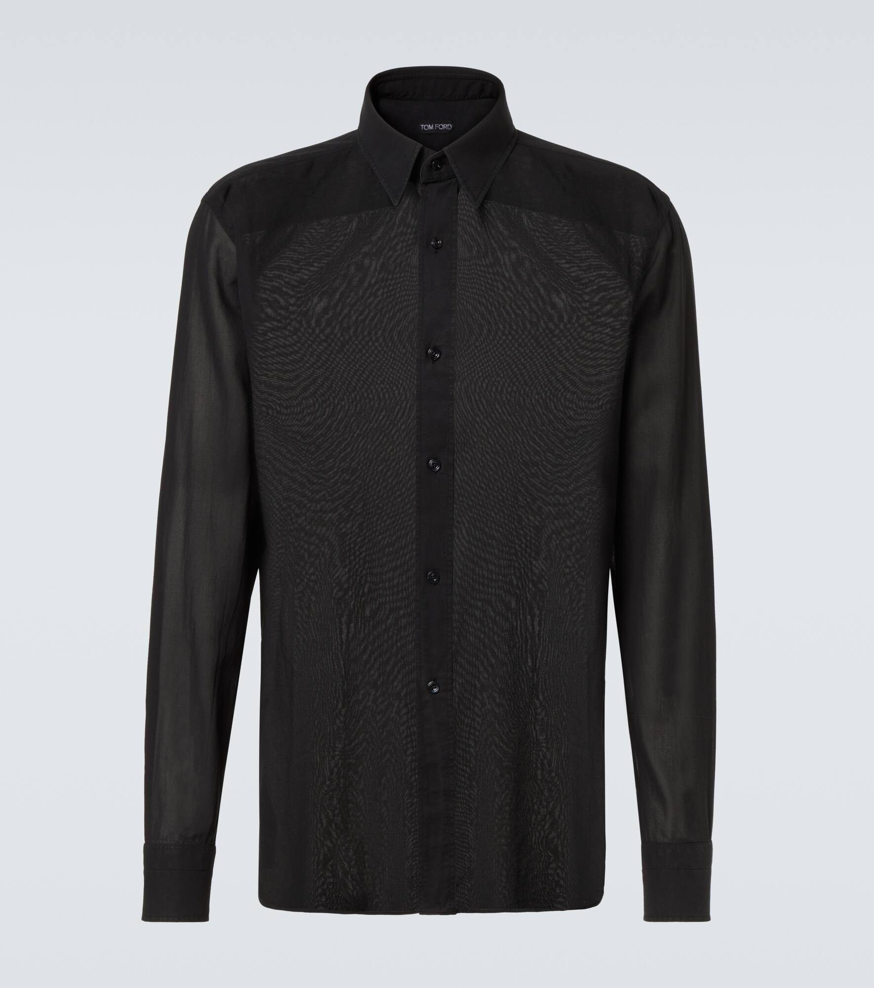 Tom Ford’s tailoring showcases meticulous attention to detail with a dose of high-octane glamour, as proved by this shirt. Crafted from cotton voile, the piece is magnetic and refined with its sheer silhouette. Product Details - Material: 100% cotton - Care instructions: dry clean - Made in Italy - Designer color name: Black - Item color: black - Contains non-textile parts of animal origin - Closure: buttoned front - Collar: classic (Straight point) - Cuff: buttoned - Item number: P01042778 Size & Fit - True to size - Without pleats in the back - Classic fit - Non-stretchy fabric - Falls below the hip - Height of model is 189cm-74.5" and wears a size EU 41