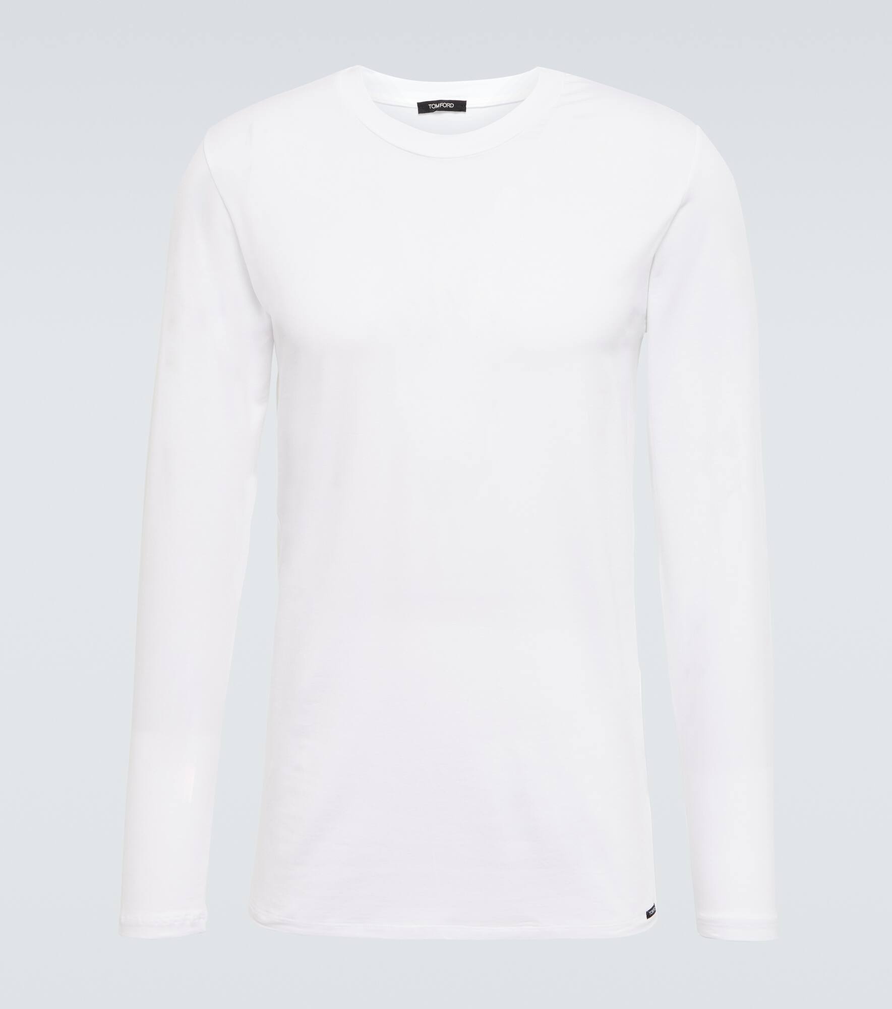 This crewneck T-shirt from Tom Ford has long sleeves and is cut into a straight-fit. The piece offers a variety of styling possibilities with its timeless and uncomplicated design. Product Details - Material: 47% cotton, 47% modal, 6% elastane - Made in Bosnia and Herzegovina - Care instructions: machine wash at 30 degrees - Designer color name: White - Item number: P00788907 Size & Fit - True to size - Slim fit - Mid-weight material - Falls to the hip - The model in the picture is 185cm-6'1" and wearing a size M